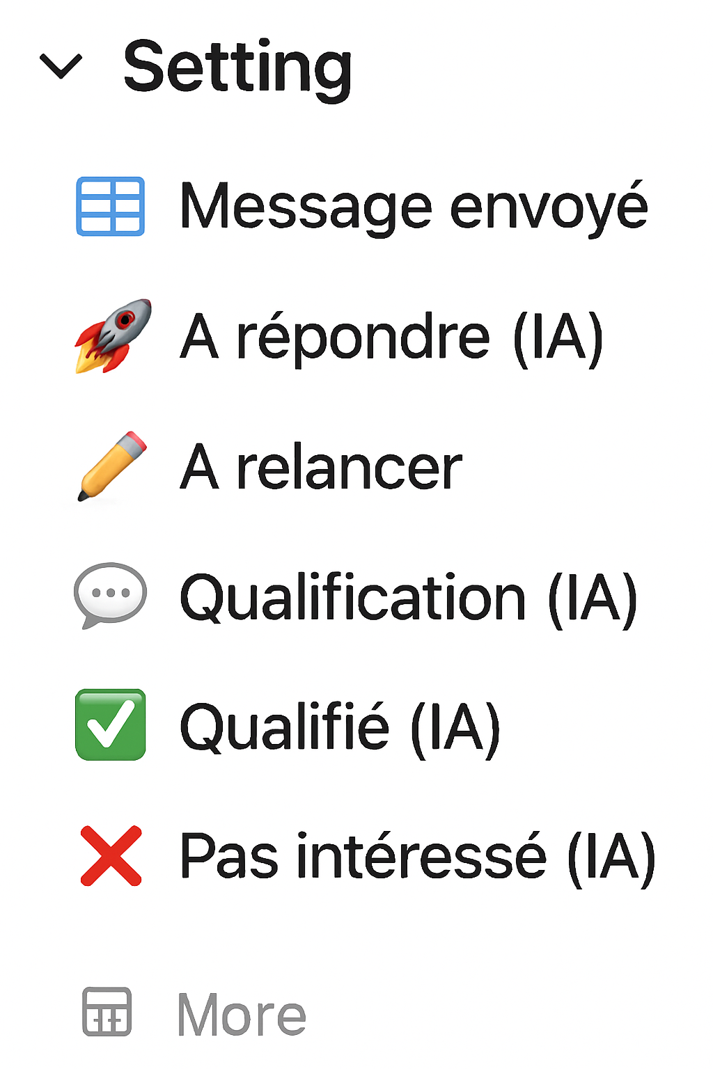La base de donnée Airtable agit comme un vrai CRM optimisé pour la gestion de tes leads clients.