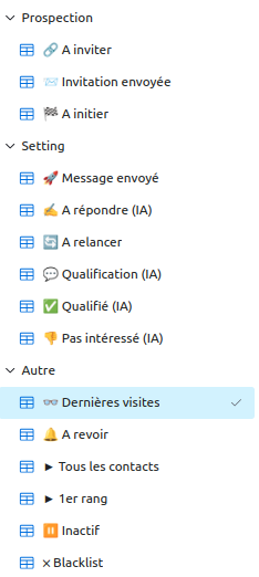 Analyse automatique de tes profils en fonction de ton “persona” (profil utilisateur). Chaque contact est évalué pour déterminer s’il est potentiel ou non potentiel, selon les critères définis.